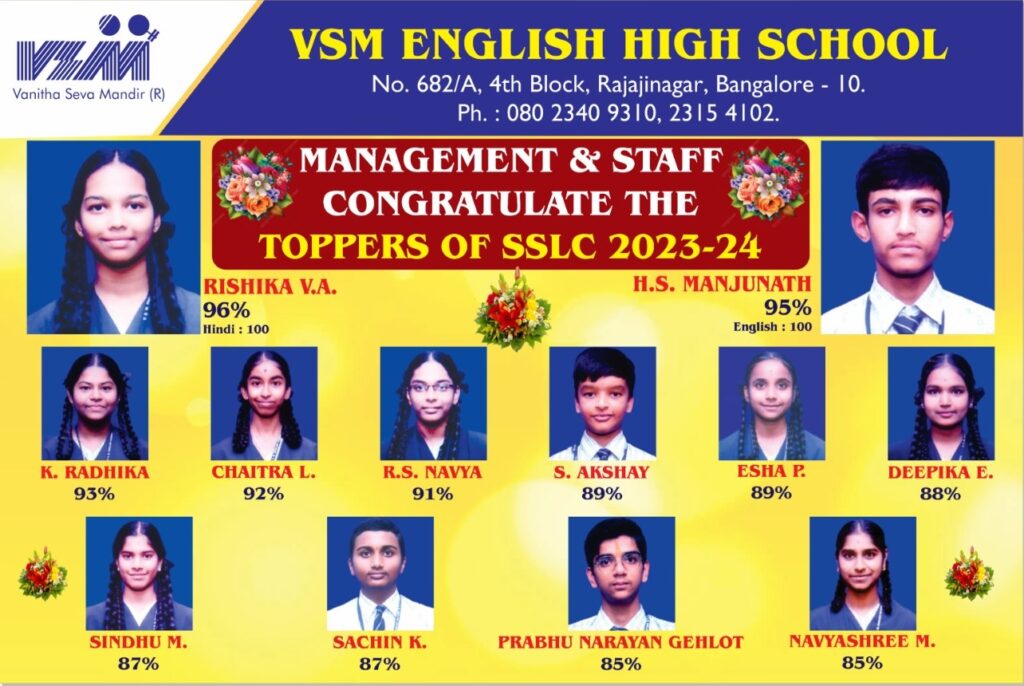 - VSM English School has a track record of excellent results in the SSLC (10th standard) examinations, reflecting the dedication of both students and educators.